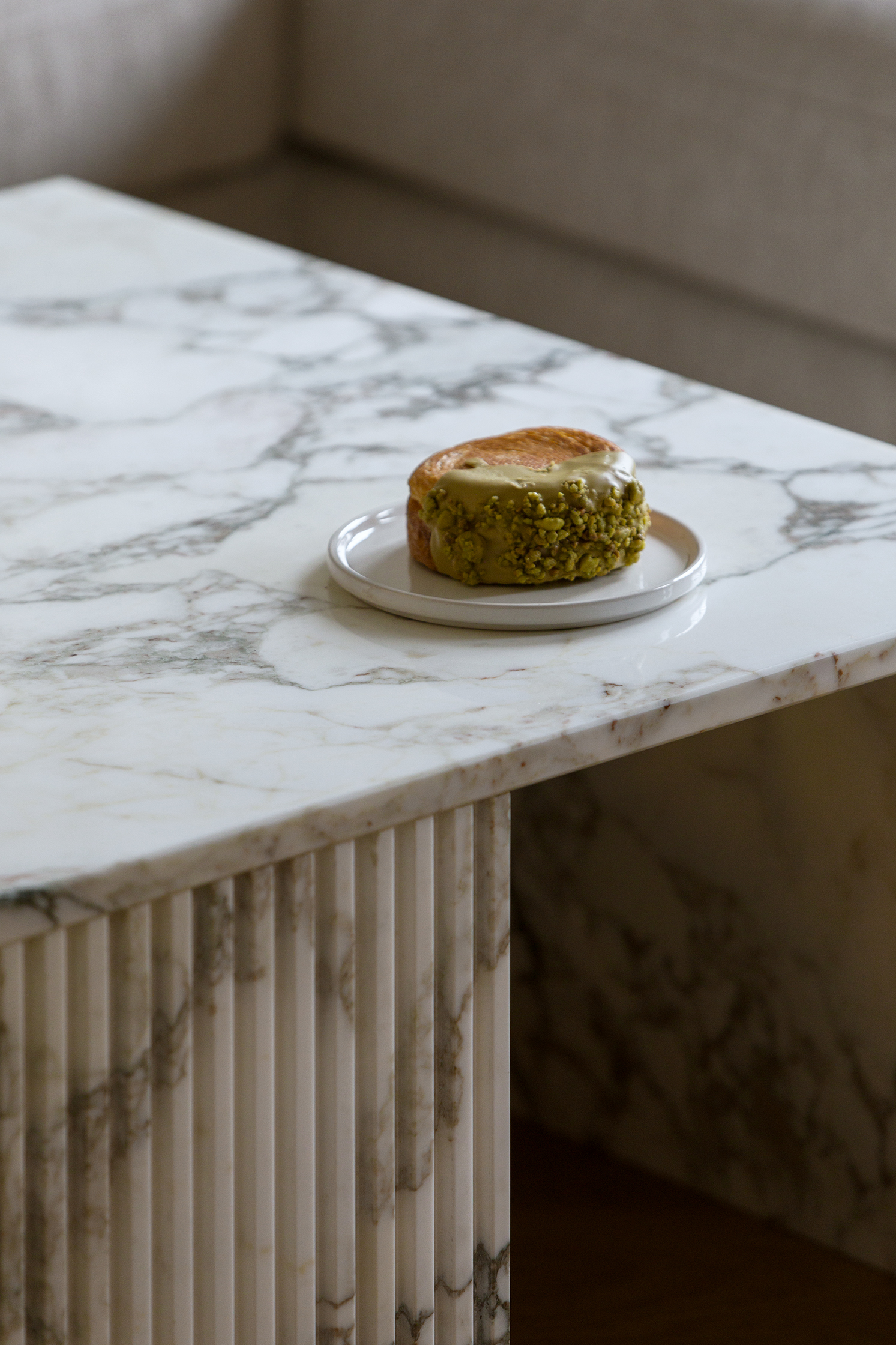 Ton całej aranżacji nadał marmur Calacatta – materiał wymagający, ale, jak mówi autorka projektu, prawdziwy, jak emocje. Właścicielka mieszkania zakochała się w nim od pierwszego wejrzenia, wybierając naturalny kamień zamiast perfekcyjnych spieków.