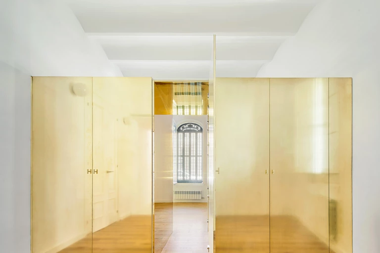 Wyróżnikiem tego domu znajdującego się nieopodal Barcelony jest niezwykła garderoba wyglądająca niczym złota szkatułka. Za projekt odpowiada pracownia Raúl Sánchez Architects.