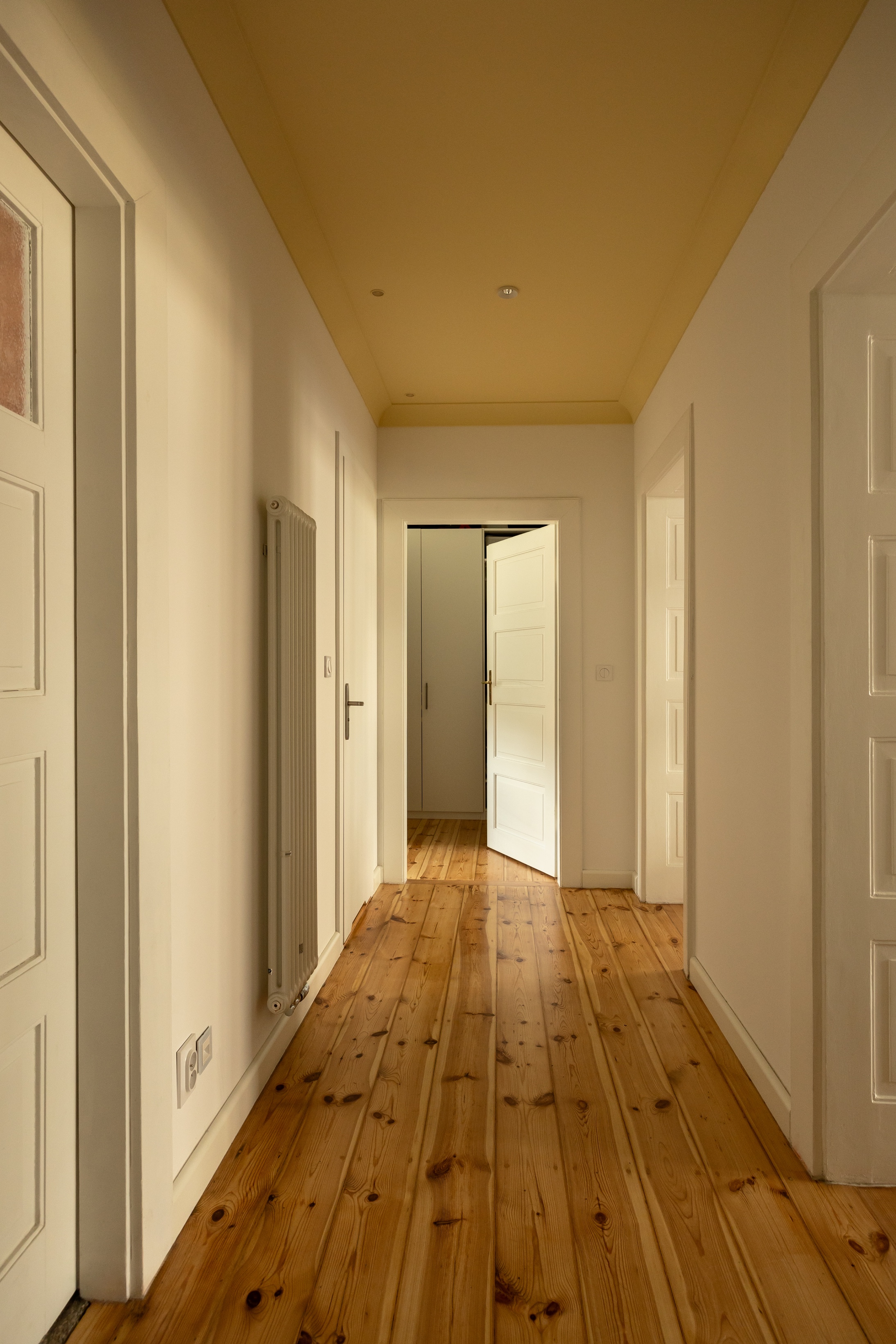 Żółte sufity w przedwojennej kamienicy. Nowe oblicze historycznego wnętrza