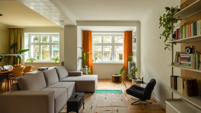 Metamorfoza wnętrza o wysokości trzech metrów objęła przede wszystkim zmianę układu funkcjonalnego, co polegało na połączeniu dwóch największych pomieszczeń w jedną otwartą strefę dzienną. Podczas remontu odkryto i zachowano oryginalne elementy wykończenia, takie jak gruboziarniste tynki w naturalnych barwach oraz drewniane deski podłogowe. Praca w obiekcie historycznym wymagała elastyczności i gotowości do zmiany koncepcji w zależności od znalezisk odsłanianych na etapie realizacji.