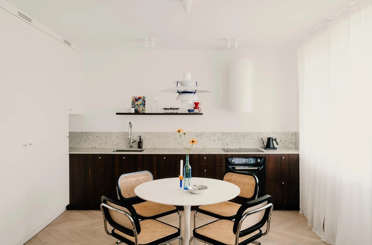 Jasne, subtelnie retro i minimalistyczne, a zarazem pełne wyrazistych detali – tak można opisać 64-metrowe mieszkanie w nowym budownictwie na krakowskim Podgórzu. Za projekt odpowiada Agata Popieluch Studio.