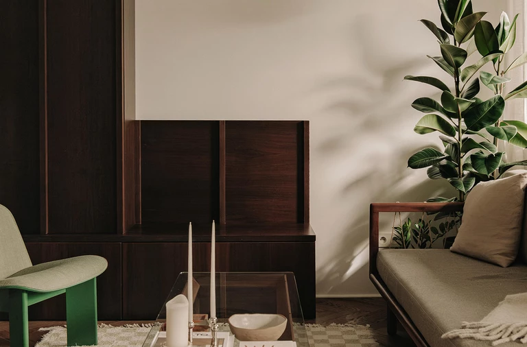 Wnętrze mieszkania znajdującego się w przedwojennej kamienicy z 1926 roku zostało zaprojektowane tak, aby podkreślić pierwotną architekturę budynku, skupiając się na skali, świetle i proporcjach.