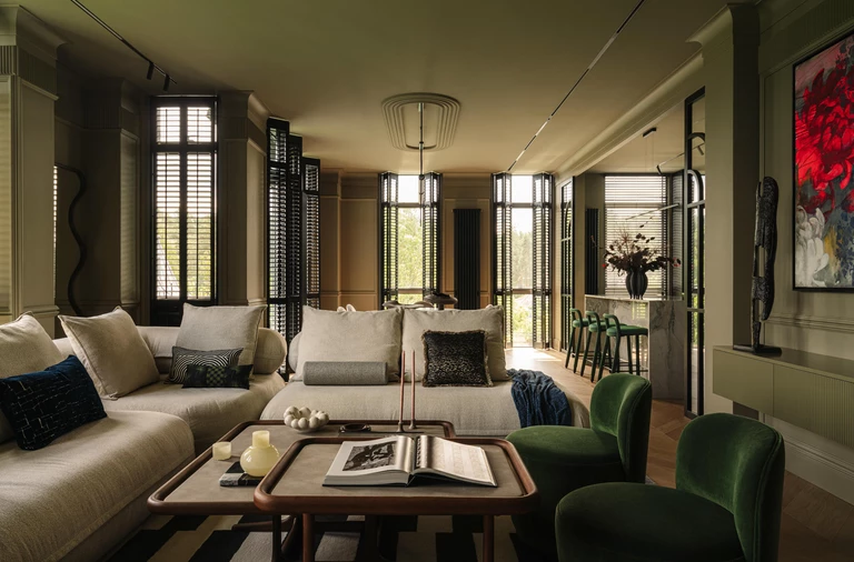 W Konstancinie, zielonym przedmieściu Warszawy, projektantka Olga Gryban stworzyła apartament dla wymagającego klienta – mężczyzny prowadzącego aktywne życie, ceniącego podróże, rzadkie przedmioty i najwyższą jakość codzienności. Wnętrze na trzecim piętrze kameralnego budynku w stylu neoklasycznym stało się jego prywatną odpowiedzią na standard najlepszych butikowych hoteli świata.