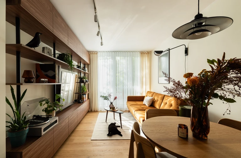 W modernistycznym bloku z lat 70., powstało mieszkanie, które łączy ducha przeszłości z nowoczesną funkcjonalnością. Architektka Natalia Klim-Matuszewska z pracowni nklim.design stworzyła przestrzeń, która nie tylko spełnia funkcjonalne potrzeby mieszkańców, ale też wpisuje się w charakter budynku.