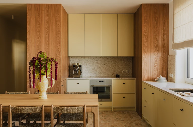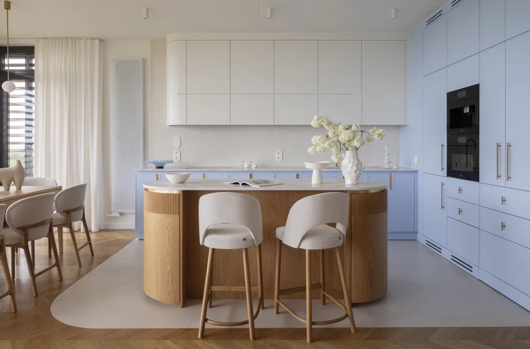 W samym sercu Łodzi, w modernistycznej kamienicy z końca lat 30., architektka wnętrz i właścicielka pracowni LUVA architecture – Joanna Fabjańska – stworzyła przestrzeń dla swojej rodziny, która harmonijnie łączy ducha epoki z autorskim, współczesnym podejściem do projektowania. Mieszkanie o powierzchni 94 m² to hołd dla modernizmu i duńskiego minimalizmu, a zarazem osobista opowieść o kolorze, formie i sztuce.